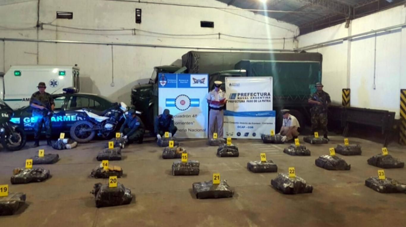 En un operativo conjunto de la Policía de Corrientes, Prefectura Naval y Gendarmería Nacional se secuestró 769 kilos de marihuana en Paso de la Patria. La droga tenía como destino la ciudad correntina de Itatí, ciudad cuyo intendente, vice y comisario fueron detenidos en una causa por narcotráfico.