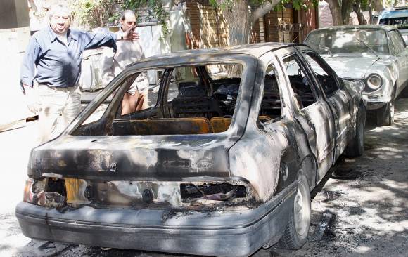 Salieron desesperados a tratar de apagar el fuego, pero poco pudieron hacer por su Renault 12 que permanecía estacionado frente a su departamento (en la planta baja) y pegado al cordón de calle Colectividad Italiana. El fuego devoró todo el interior del coche.