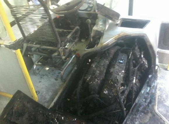 Una falla eléctrica provocó el incendio del motor, el tablero y el asiento del chofer de un colectivo de la Línea 52 que circulaba con pasajeros por calle Sargento Cabral, a la altura de Dorrego, en Capital. E