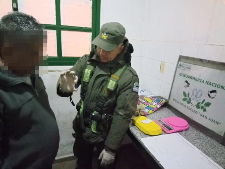 Integrantes del Escuadrón Núcleo “San Juan”, sobre la Ruta Nacional N° 40 a la altura del control fitozoosanitario “San Carlos”, departamento Sarmiento, inspeccionaron una camioneta en la que se trasladaban dos personas. Durante la requisa, hallaron un paquete tipo “ladrillo” que contenía 999 gramos de cocaína.