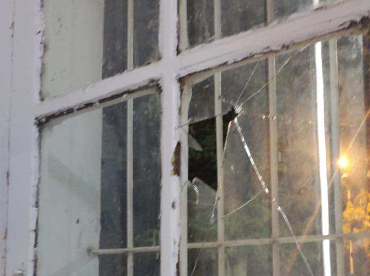 Una lluvia de piedras se hizo presente por parte de los ocupantes, quienes atacaron a los uniformados. Dañaron un móvil policial y rompieron el vidrio de la sede de la Motorizada N°4.