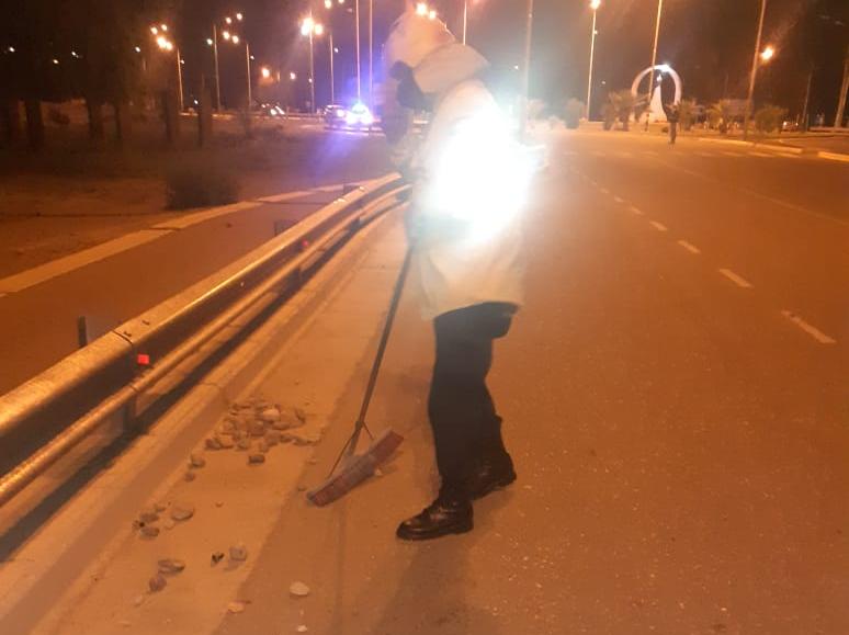 Por el hecho, un policía tuvo que ser hospitalizado mientras que personal de Bomberos, limpiaron la zona.