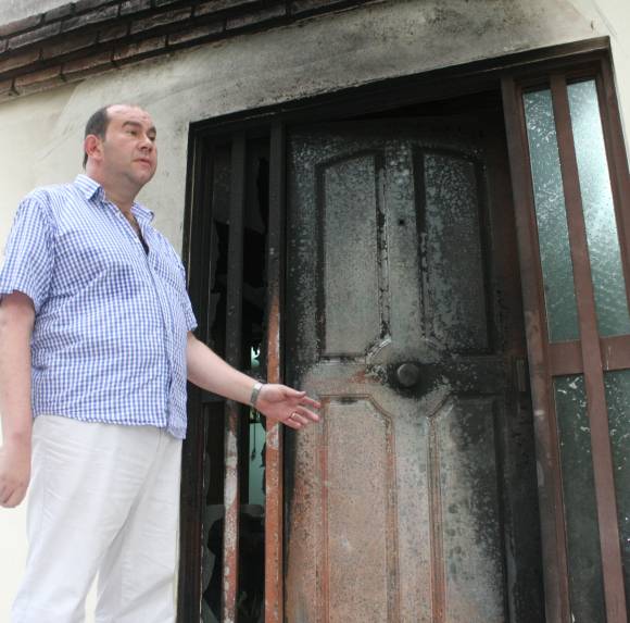 ‘Yo no denuncié porque pensaba que era una broma. Nunca defendí a un violador de La Bebida y la verdad que no sé a qué atribuir este hecho repudiable, porque a nivel profesional, personal o político no tengo problemas con nadie’, dijo ayer Peña, mientras mostraba los daños en la puerta y el frente de su casa, y en parte de un sillón en el interior de la vivienda.