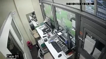 En los videos que filmó la cámara de seguridad del lugar se puede observar cómo uno de los ladrones, vestido con campera de Argentina, intenta romper a mazasos el vidrio que separa a las trabajadoras de ellos.