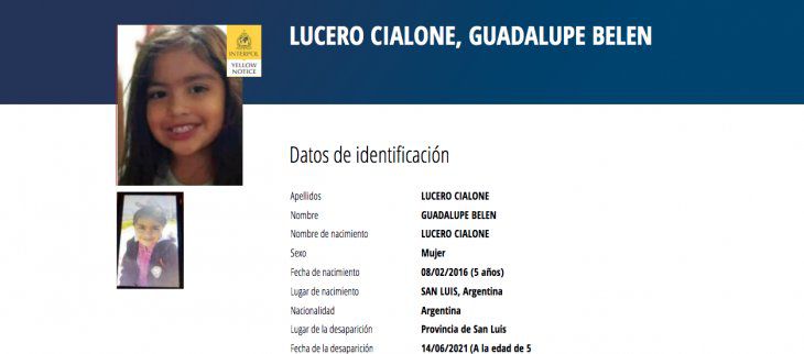 Interpol publicó la alerta amarilla por Guadalupe Lucero, luego de que la familia recibiera un mensaje de WhatsApp proveniente desde México.