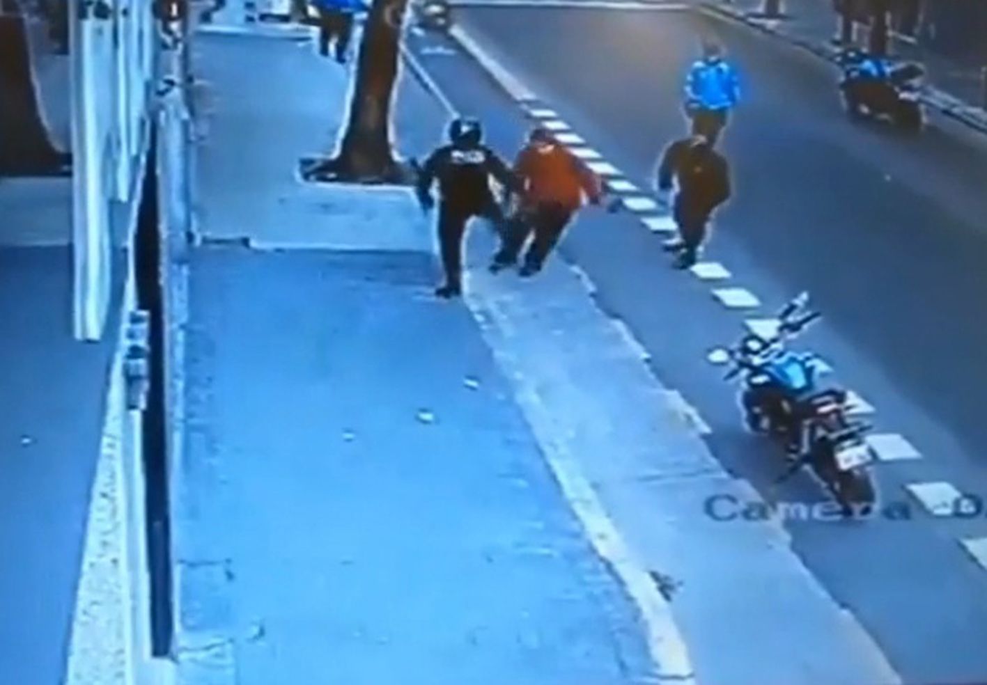 En el video se observa que poco después llegan dos policías en moto, quienes se acercaron Gómez, quien ocultaba sus manos en la espalda.