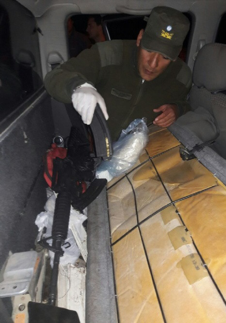 Todo estaba escondido en el asiento trasero del vehículo en el que se movilizaban (foto). Ambos sujetos serán investigados ahora por portación ilegal de un arma de guerra y dos de uso civil, porque no tenían ninguna autorización, informaron.