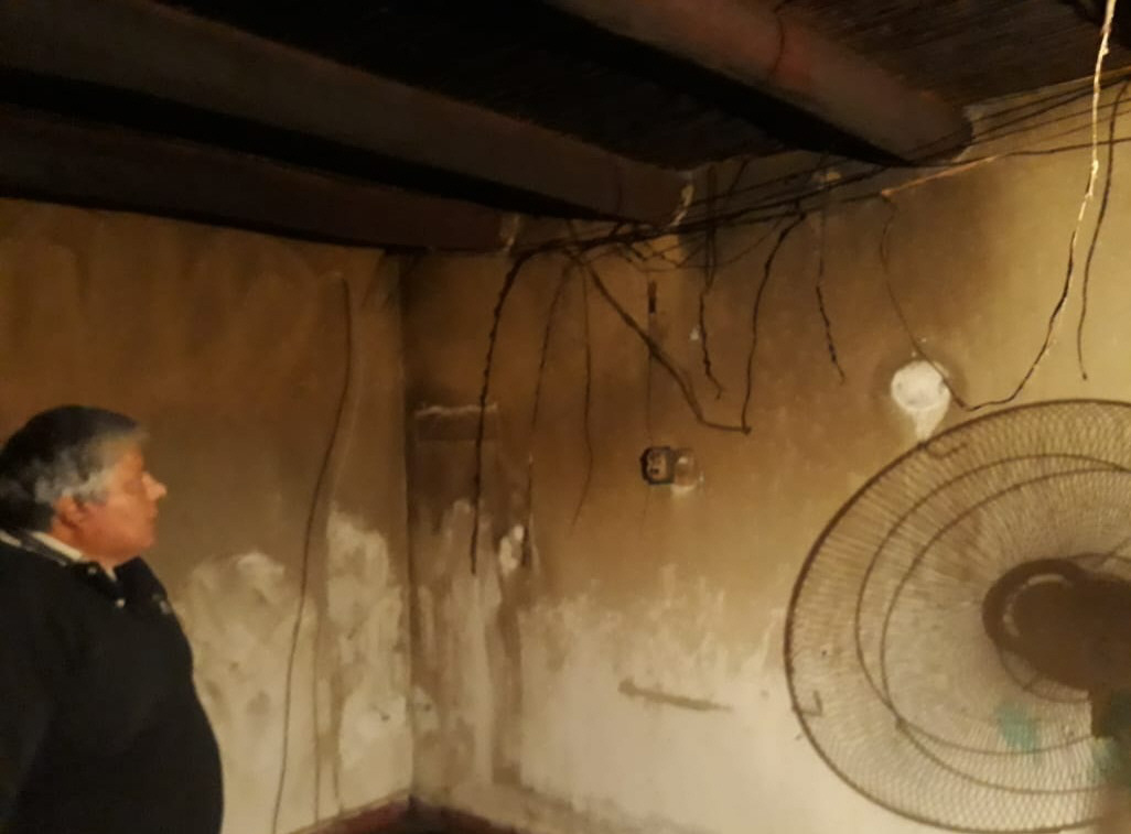 Al parecer, una falla eléctrica en un ventilador de techo generó chispazos que empeoraron las cosas cuando tomaron contacto con un colchón que estaba justo abajo. Las llamas dañaron gran parte de las cosas que había en esa habitación, como esa cama, ropa y un sillón, además del techo de palos y cañas.