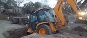 El episodio ocurrió esta tarde cuando operarios trabajaban en el lugar del hecho pero nuevamente el terreno cedió y la maquina terminó semienterrada. Al punto que otra tuvo que ayudar a sacarla ante la atenta mirada de los vecinos.