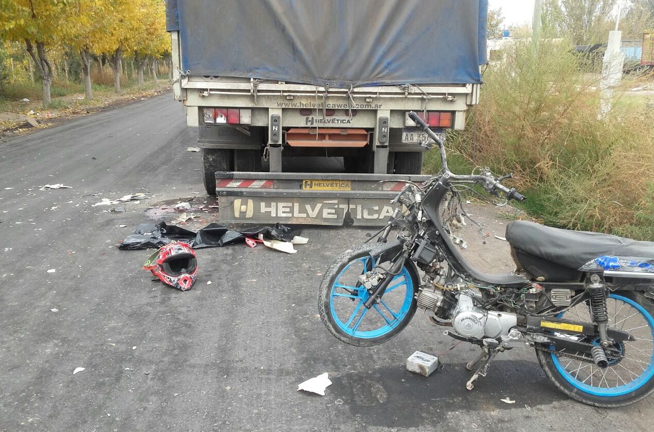 Hacía tres meses que la rutina y la vida de Hugo Jesús Quilpatay (21) habían cambiado. Porque a su vida llegó Natasha, su beba que hoy cumple 3 meses. Porque la responsabilidad de haberse casado y formar una familia lo sacaba muy temprano de la cama para ir a trabajar. A las 5 estaba en pie, se tomaba unos mates con su esposa, mimaba a su beba y partía en moto a un largo recorrido: salía de la casa de sus suegros en el barrio Ricardo Colombo, en Las Lomitas, Albardón, llegaba a la sede de la constructora que lo empleaba en Rawson, y de ahí volvía a salir en algún vehículo junto a otros albañiles rumbo a Sarmiento, donde construyen una escuela. Cerca de las ocho de la tarde, estaba otra vez en su casa. Cuando podía, se hacía lugar para ir a una iglesia evangélica. Ayer, Jesús intentó repetir su viaje al trabajo pero no avanzó mucho: cuando circulaba en su Maverik 110cc hacia el Sur por Tucumán, por alguna razón no percibió a tiempo el camión Iveco con acoplado estacionado frente a la bodega Fecovita (unos 100 metros al Norte del cruce con Italia), en Albardón, y el tremendo impacto sin frenar contra la parte trasera del acoplado decretó su fin. Eran alrededor de las 6,15 de ayer.