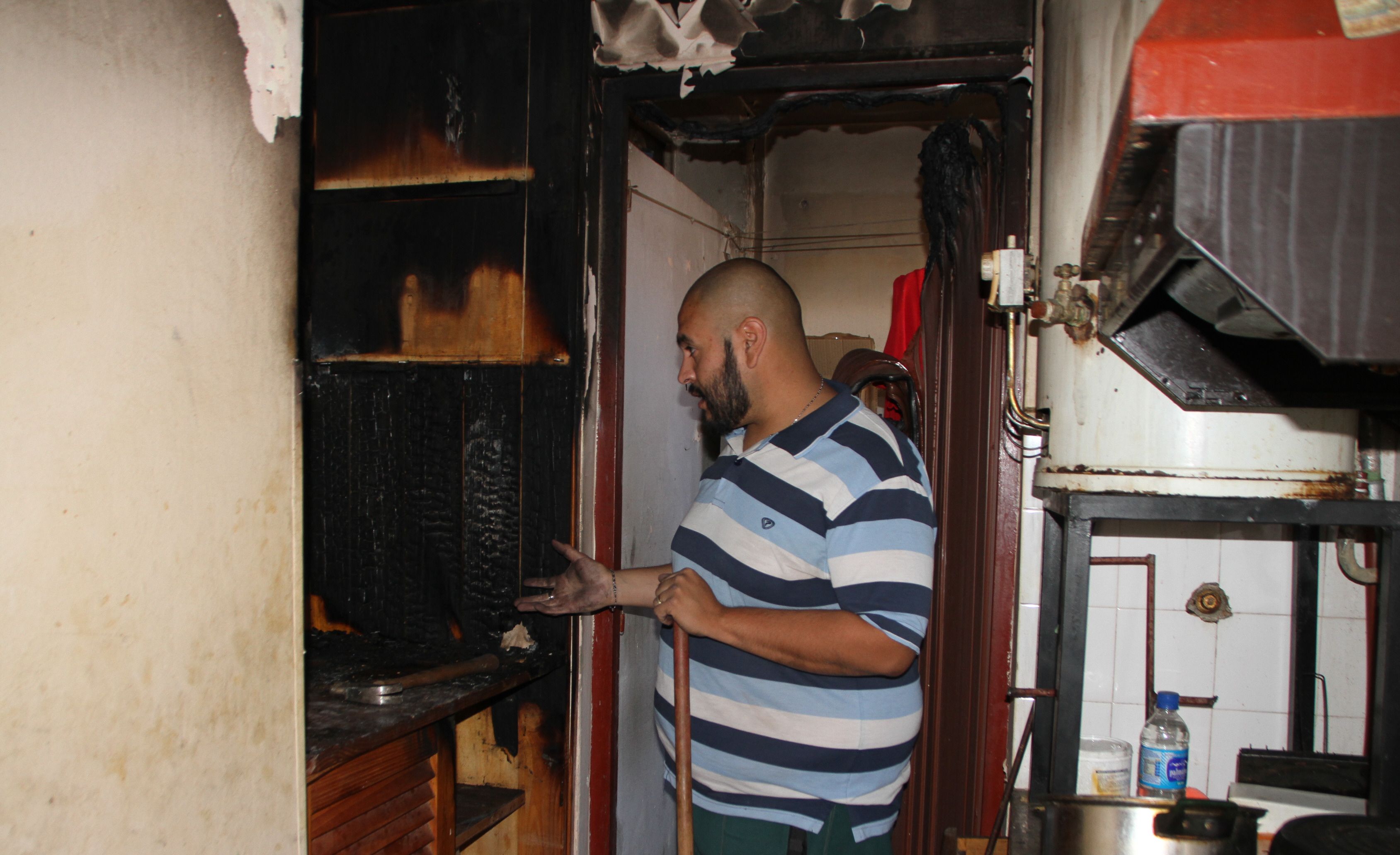 Limpieza. José Martínez, el hijo de la jubilada, limpiaba el lugar donde se produjo el siniestro.