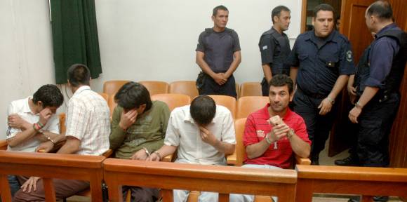 Más policías de lo habitual dentro de la sala de juicio; en un pasillo contiguo a ese recinto, en otros de Tribunales y fuera del edificio. Uniformados y de civil. Precauciones de rigor ineludibles si se tenía en cuenta que por enésima vez arribaba al banquillo de los acusados el renombrado "Ula Ula" Víctor Daniel Ibáñez Torres (39). El sujeto cuenta con múltiples antecedentes por delitos graves y es considerado peligroso, igual que los otros cuatro reos trasladados ayer a la Sala III de la Cámara Penal para ratificar que aceptaban el delito y las penas acordadas con el fiscal José Eduardo Mallea en un juicio abreviado, por una fuga resonante y polémica: la que Ibáñez Torres y el acusado de robar más de 100.000 pesos en mercadería electrónica de "Falabella", Oscar Alfredo Gómez Juárez (o Juan Daniel Funes Gramajo, de 37 años) protagonizaron a las 15.40 del 9 de marzo del año pasado del pabellón de máxima seguridad del penal de Chimbas.