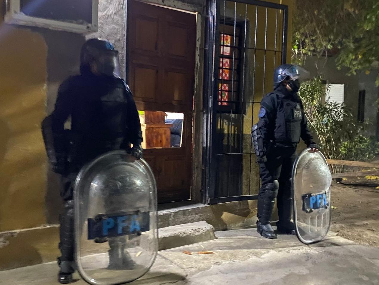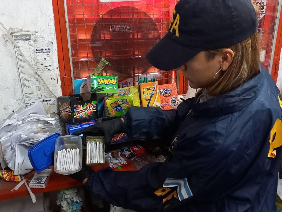El primero de los allanamientos, realizado durante la tarde del viernes, fue en una vivienda de Rawson donde funcionaba un kiosco, según los pesquisas, utilizado como fachada para comercializar estupefacientes y operado por un joven.