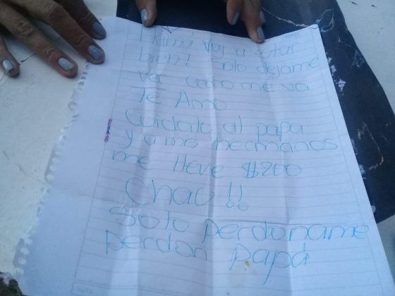 En el papel,  le pide a su mamá que cuide de sus hermanos y padre, pero no deja ningún dato de donde podría estar.