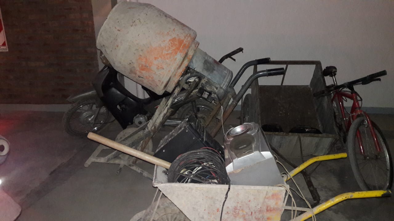 Según manifestaron fuentes policiales, los jóvenes de 17 y 15 años habían retirado  una hormigonera,  un equipo de música y  dos palas.