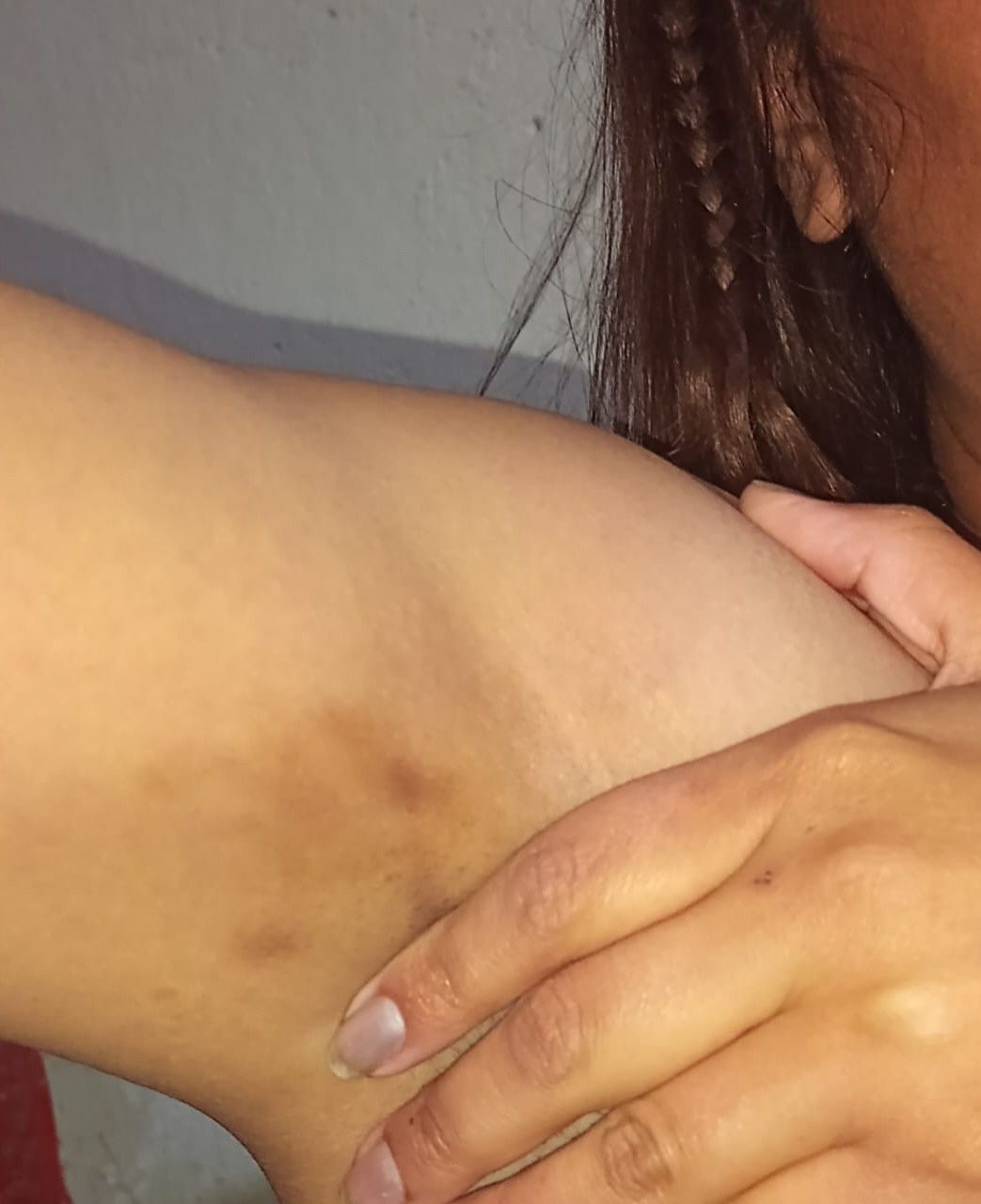 Los brazos todavía me duelen, tengo moretones verdes, también la cabeza. Mi mamá me bañó ese día y me sacó los pelos que él me arrancó”, dijo la mujer, quien aportó las fotos de su cuerpo.
