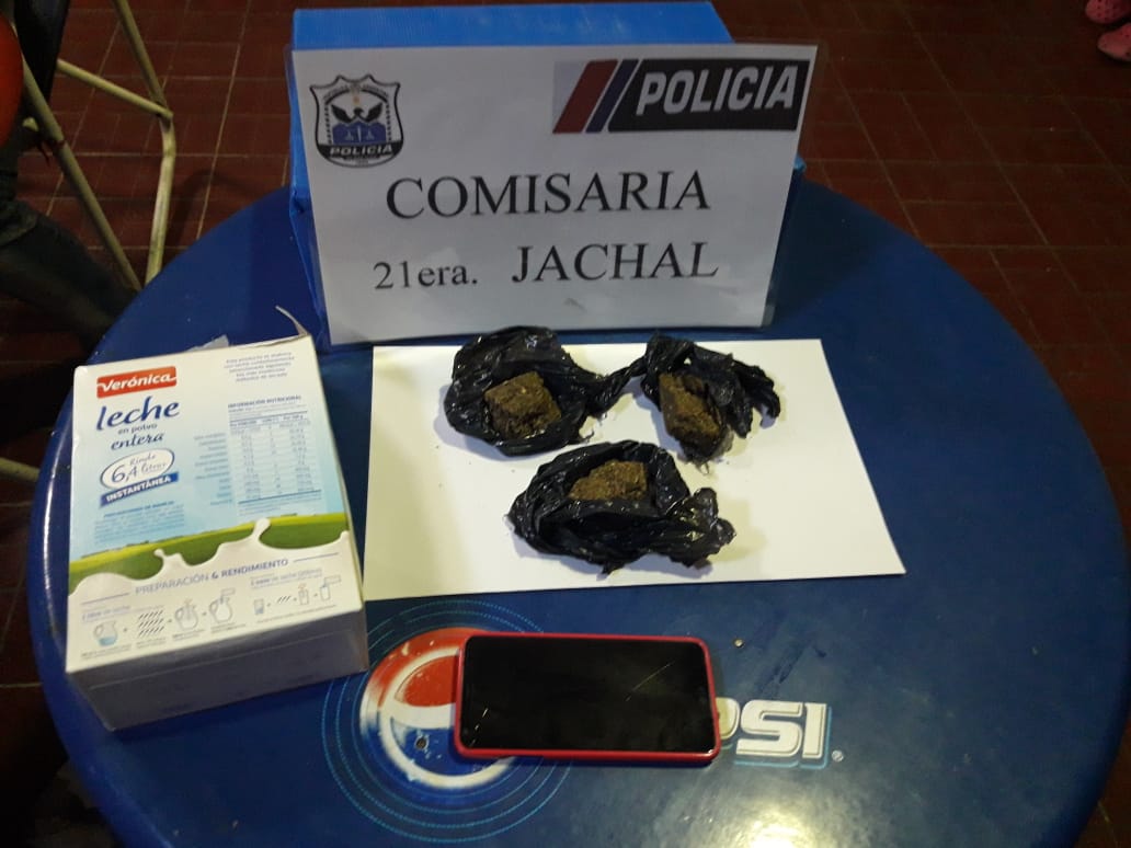 Todo sucedió poco antes de las 23 cuando personal de la Seccional 21 que trabaja en el lugar de civil notó a la joven en actitud sospechosa.  Cuando le pidieron abrir el paquete que le había llegado desde la Ciudad de San Juan, se toparon con que la caja de leche tenía en su interior 3 piedras de marihuana, con un peso total de 74.8 gramos.