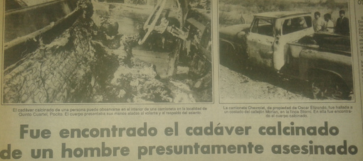 San Juan, 18 de julio.- La vida de Rubén Elizondo, el penitenciario asesinado ayer por dos malvivientes, no fue fácil y atravesó un terrible capítulo allá por abril de 1991 cuando su madre y amante mandaron a matar a su padre. El hombre apareció incinerado y atado con alambres al volante y asiento de una camioneta en la zona del Quinto Cuartel, en Pocito.