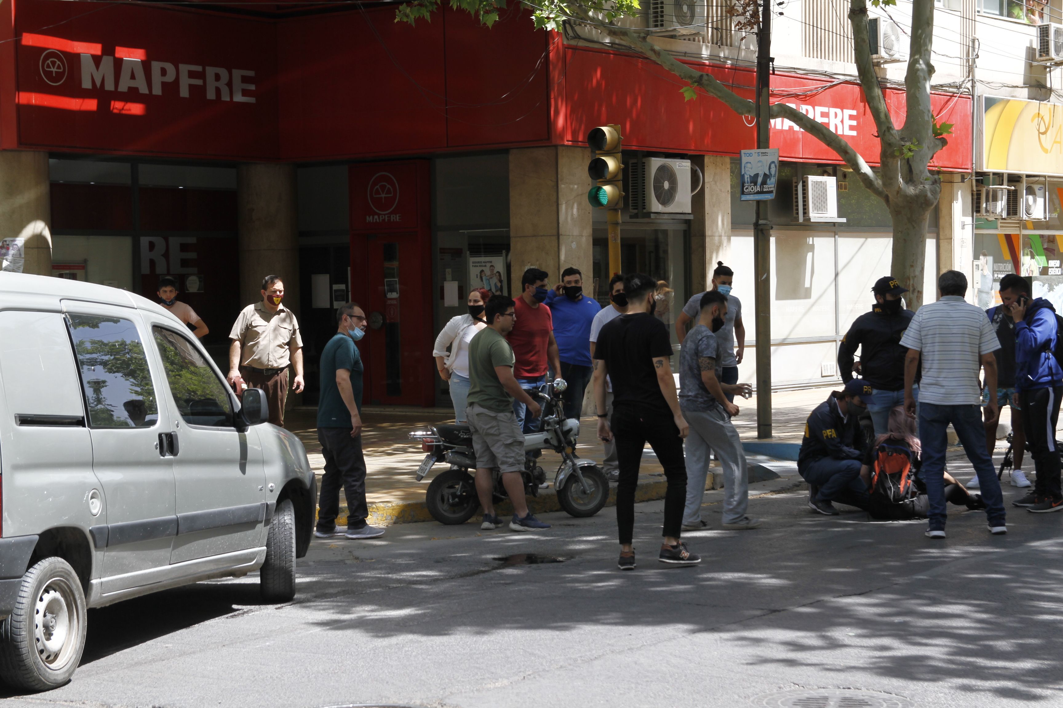 Un utilitario embistió a una moto donde viajaba una joven. Producto del impacto, la chica "voló" del vehículo y cayó al suelo, pero sin sufrir lesiones.