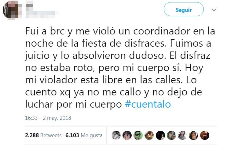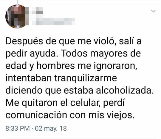La estudiante sanjuanina que denunció al excoordinador Enzo Lampasona utilizó su cuenta de Twitter para contar detalles de lo ocurrido en octubre del 2015. La chica insiste en que el joven la violó tras la tradicional fiesta de disfraces.