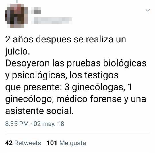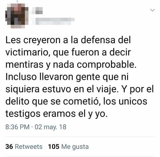 Su mensaje conmovió a muchas usuarias que manifestaron su apoyo bajo el lema "Yo te creo" (leyenda que se multiplicó en las redes tras la absolución de la "manada", la banda de jóvenes que violó a una española)