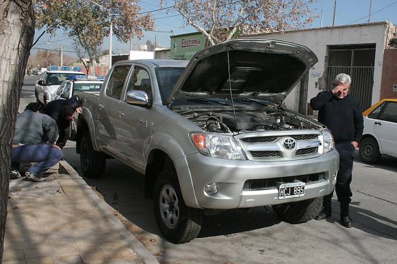 Ayer al mediodía, los efectivos del Comando Urbano dieron con otra Toyota Hilux abandonada en calle Caseros, entre Brasil y Belgrano. La camioneta estaba con llave. A simple vista se notaba que le faltaban cosas y que había sido rearmada para dejarla abandonada. Detectaron que es robada, ya que tenía la patente de una camioneta que está en Santiago del Estero, dijo una fuente del caso. Los investigadores creen que este rodado, como el otro hallado en Calingasta, fueron dejados a propósito por las personas que los tenían para tratar de "desprenderse" o borrar pruebas que los involucren en la causa por la "mafia de las 4×4".
