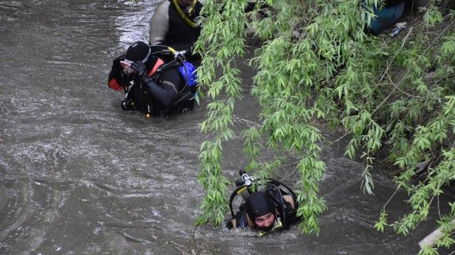 Además de los desechos que son arrojados por vecinos al desagüe, ayer se incrementó la turbiedad porque se desmoronó la obstrucción que se había colocado a la altura del colegio Romagnoli. Eso hizo que la visibilidad sea nula, y que además de los buzos tuvieran que intervenir auxiliares para acompañarlos y completar el rastrillaje por la superficie.