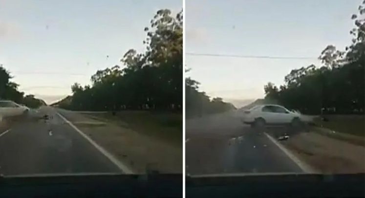 En un momento del video, se ve cómo el vehículo se desvía hacia la izquierda y queda sobre el carril de dirección contraria. Fue entonces cuando en un instante, el auto blanco impacta de lleno a un motociclista que circulaba de frente. En ese instante se desató la verdadera tragedia familiar.