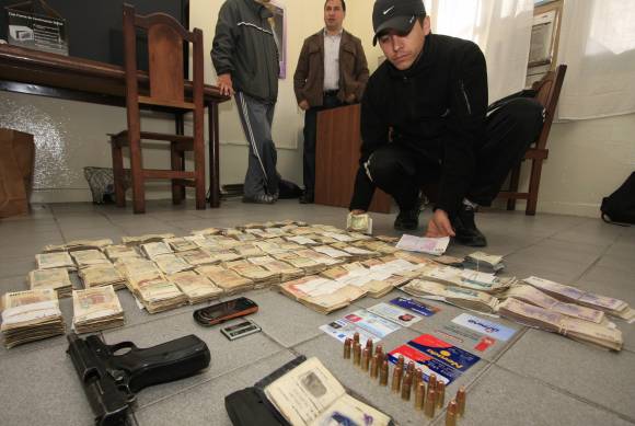 Gabriela Ivana Rodríguez (34), auxiliar de la Policía de Mendoza, y su cómplice el taxista Marcelo Rodríguez (27) fueron detenidos el viernes a la noche, en la puerta de ese hotel en calle General Acha y Rivadavia, Capital. Los descubrieron a través del rastreo de las llamadas telefónicas que realizaban. Los policías mendocinos y efectivos sanjuaninos de la Sección Robo y Hurtos, a cargo del comisario Carlos Castillo, les secuestraron una mochila con 104.000 pesos, en moneda nacional y extranjera, además numerosas prendas, una filmadora, una cámara de foto y otros efectos que compraron durante su estadía.
