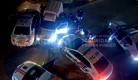 Ahora salió a la luz el video del momento en que el equipo policial, integrado por cuatro patrulleros y una moto, logra alcanzar al ladrón y lo frena en en calle San Miguel y Calle 6.