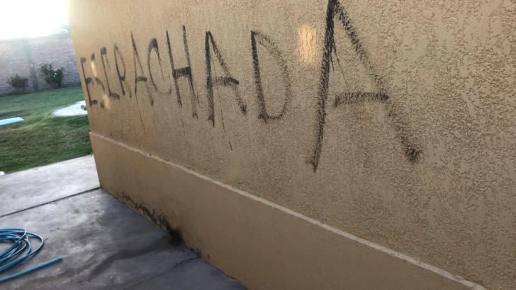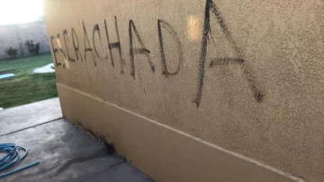 Hasta el momento, se sabe que un grupo de personas realizó pintadas en la vivienda de Claudia Olivera, una pediatra que trabaja en la Guardia del Hospital Rawson y que agredió a la empleada doméstica de la profesional.