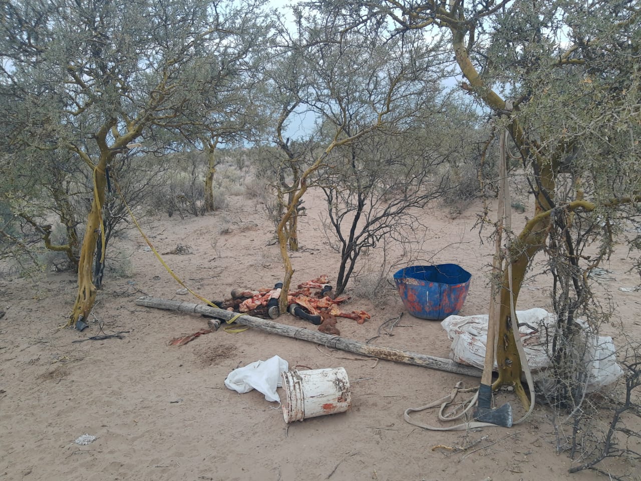 Los pesquisas de la División Policía Rural tenían el nombre de Marcial Gil en la mira por presunto cuatrerismo. Por lo que, cerca del mediodía de este viernes, los investigadores se apostaron en las inmediaciones de La Plata y Rastreador Calívar, en la zona de La Puntilla, en las afueras de Caucete. Tenían el dato que allí, frente a la Bodega Arenas y en el mismo predio donde hay un hotel alojamiento que está en construcción, funcionaba la carnicería clandestina del sospechoso.