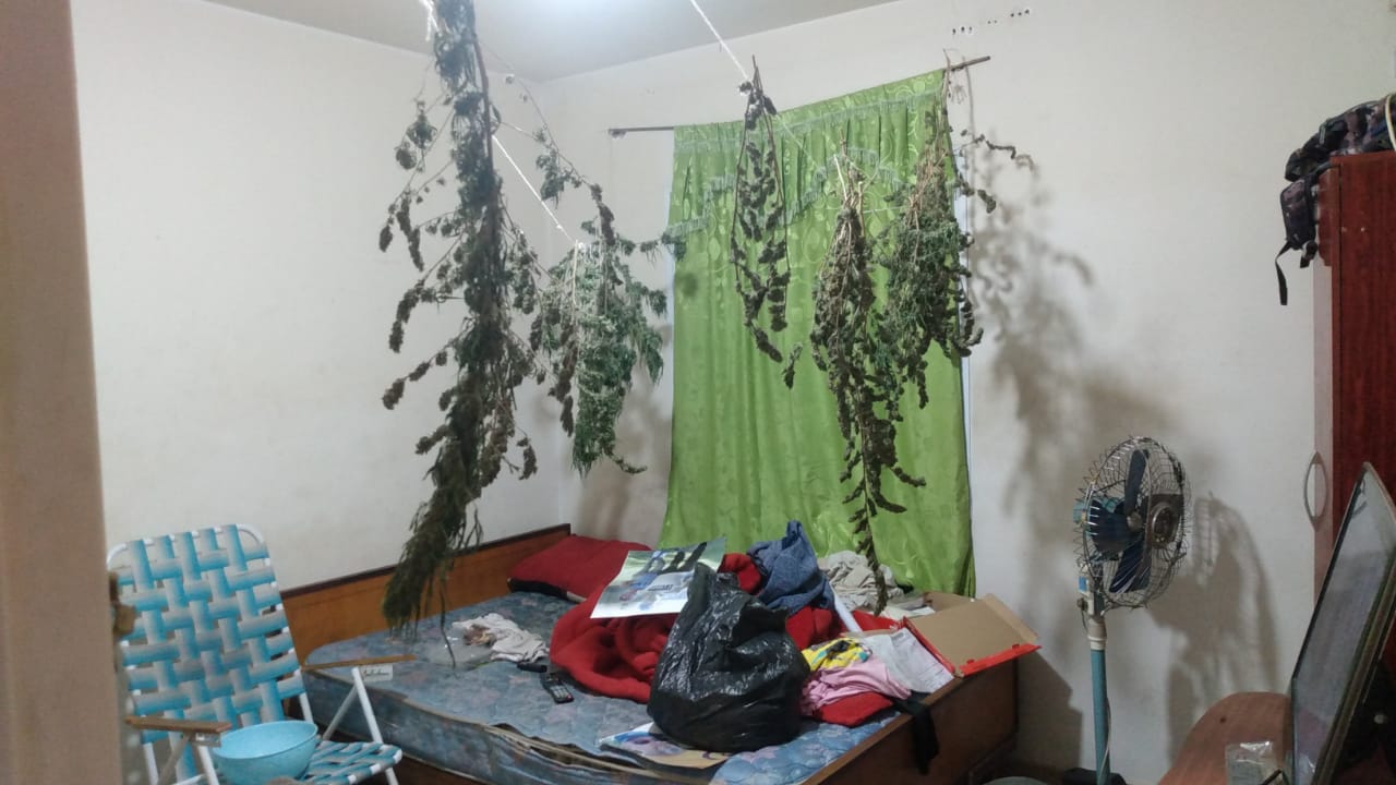 Cuando los uniformados entraron, se toparon con que en el lugar se cultivaba marihuana. En dos habitaciones se secaban estas plantas, en la heladera había más de dos kilos de cogollos y en el fondo otras 25 plantas, de entre 1.60 y 3.50 metros de altura.