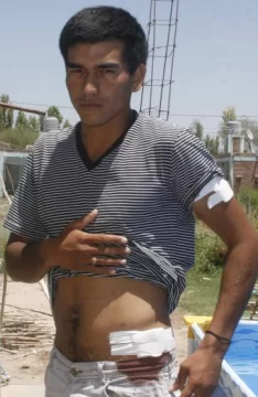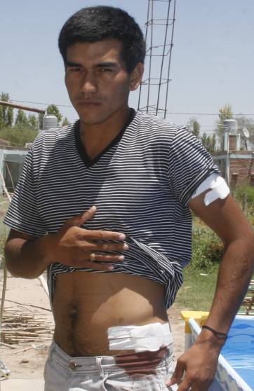‘Lo único que pensé en ese momento fue en defender a mi novia, por eso le grité que se fuera corriendo y me agarré a las piñas con los choros. En ese momento no pensé nada, pero ahora veo que me podría haber pasado algo peor’. Cristian Guevara tiene 22 años y ayer relataba la situación límite que vivió junto a su novia de 15 años el jueves en la noche cuando dos ‘motochorros’ los atacaron en una plaza de Albardón. El joven se detuvo a orinar en unos baños y allí aparecieron los delincuentes que se pararon con la excusa de preguntar la hora. El muchacho sacó su celular y ahí los malvivientes agarraron dos piedras y lo amenazaron para que entregara el aparato. Entonces, Guevara se trenzó en lucha contra ambos, hasta que fue herido a puntazos en la cintura y un brazo. De todos modos, la resistencia del joven dio sus frutos porque los delincuentes desistieron de atacarlo y hasta fueron perseguidos por el joven que, así, logró que uno de los ladrones arrojara su celular.