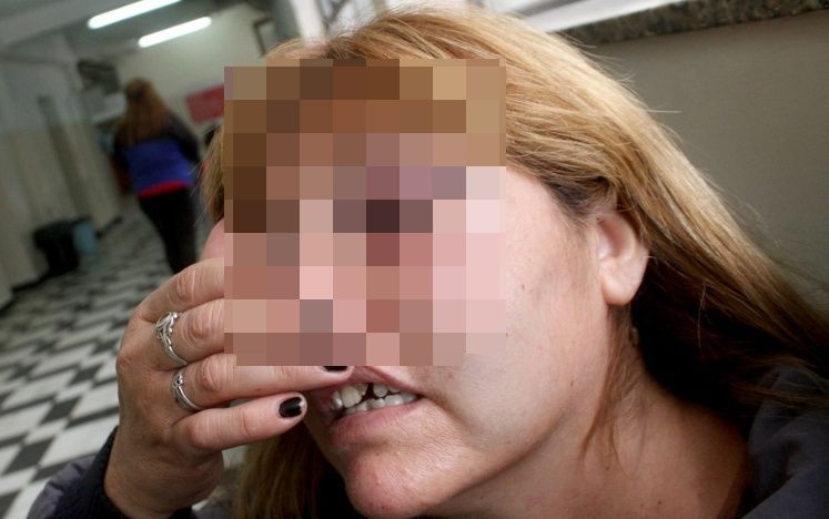 Con el ojo izquierdo morado, fracturas en el rostro y un diente partido. Así quedó Soledad Irazoque (44) después de que dos motochorros le propinaran una brutal golpiza cerca de su casa, en Albardón, para robarle el celular y $500, indicó la mujer.