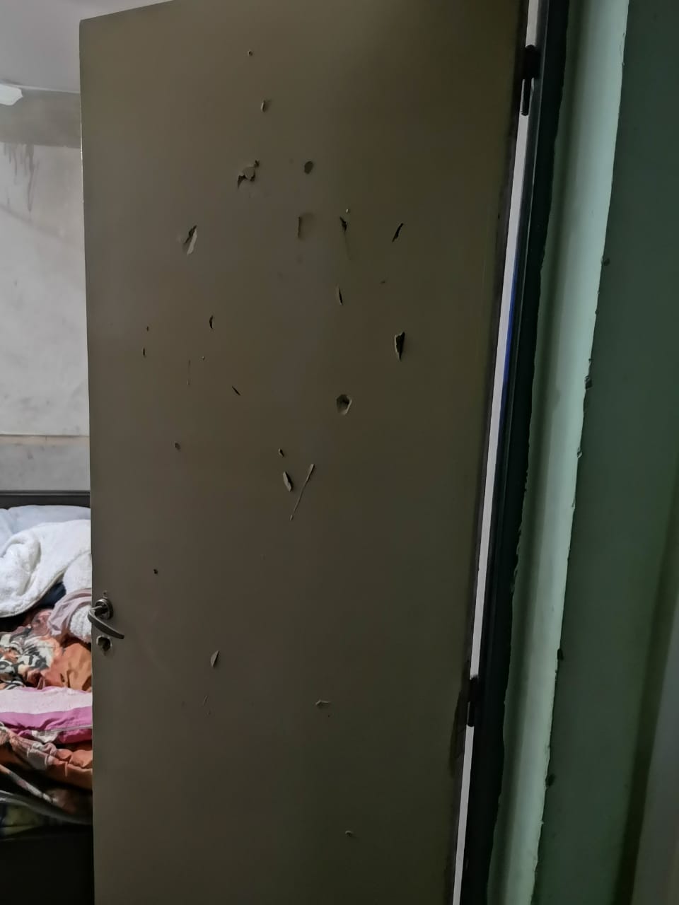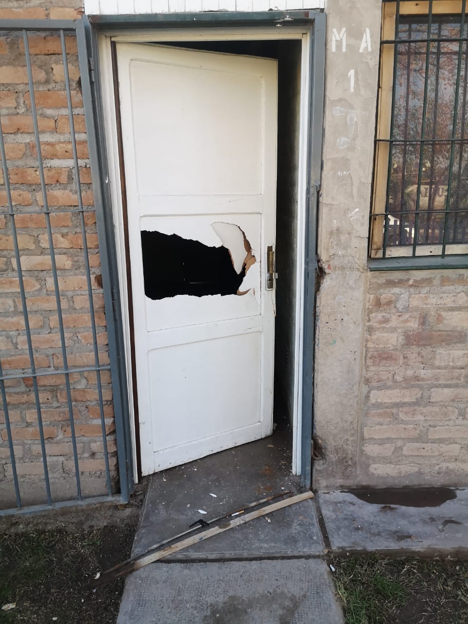 Ese accionar enfureció a Herrera, quien tomó un cuchillo tipo carnicero de 36 centímetros y comenzó a golpear la puerta, primero con los puños y luego con el cuchillo, provocando mas de veinte agujeros.