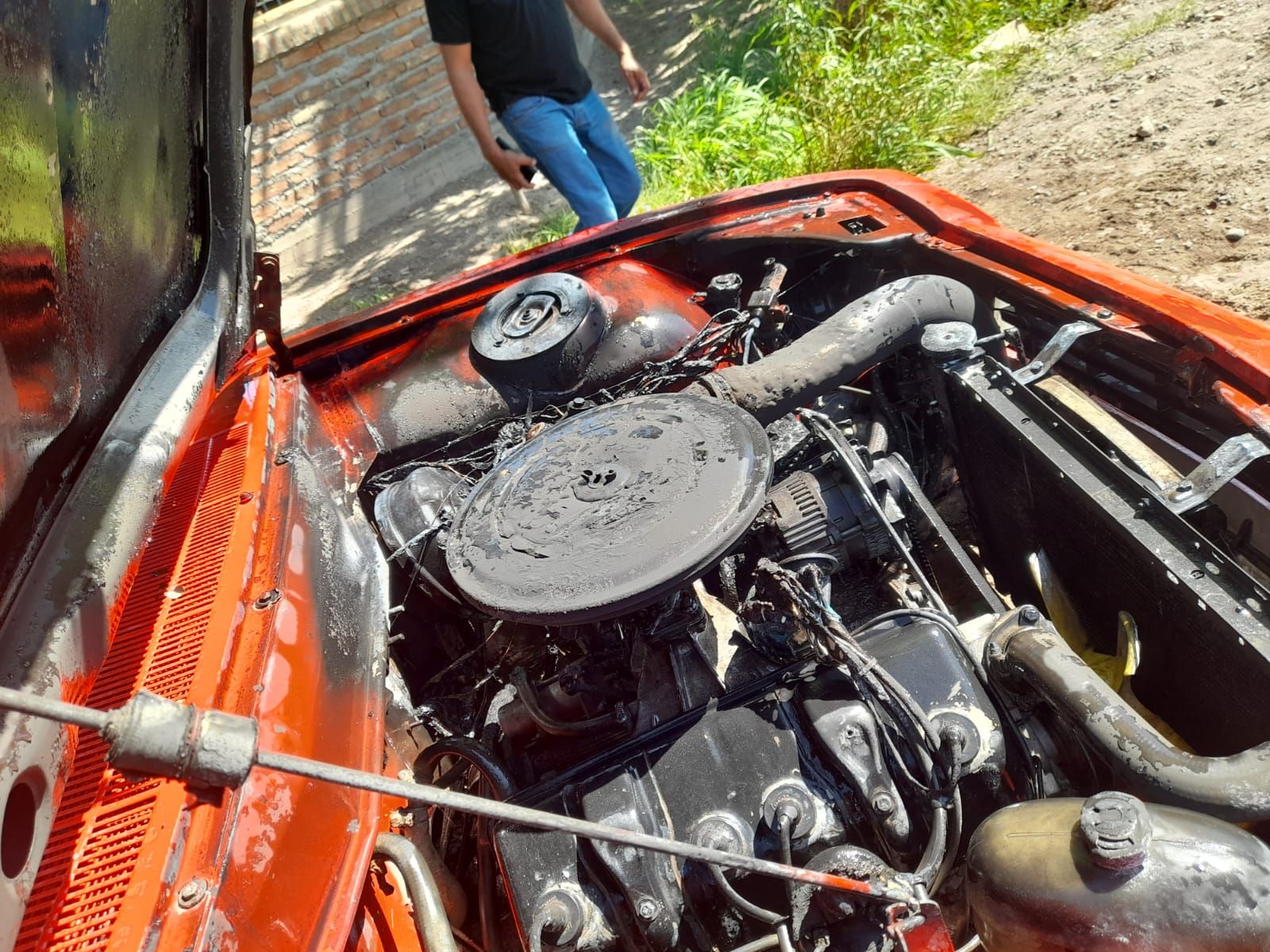 Debido a que el vehículo, marca Peugeot 504, se encontraba justo detrás del cuartel, los Bomberos llegaron rápidamente al lugar y evitaron que las pérdidas fueran totales.