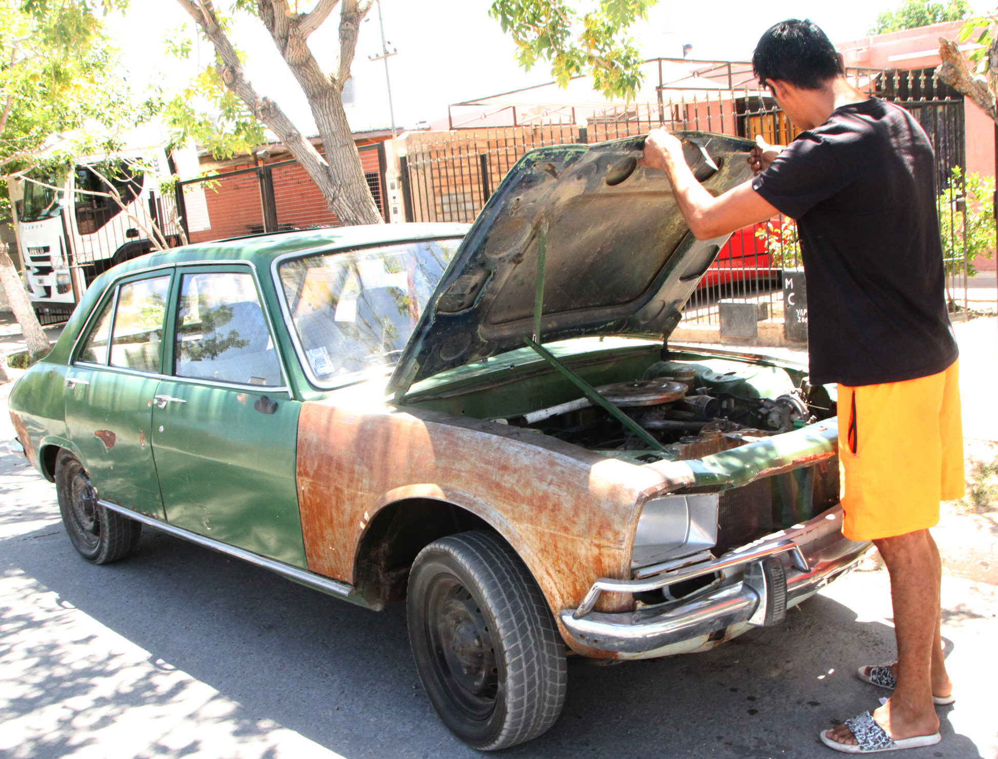 Habían pasado unos minutos de las 2 del lunes y el albañil Darío Gremoliche (29) evaluó que, por las copas de más con sus amigos, lo mejor sería irse a pie a su casa en el barrio Andacollo I, dejando su viejo Peugeot 504 a un costado de la plaza de Chimbas sobre calle Rodríguez, casi Mendoza. Ya lo había hecho antes y la convicción de que no pasaría nada tenía otros dos motivos: el hombre del carro panchero lo conocía y el viejo Peugeot 504 quedaba bajo el ojo de una cámara de seguridad situada en la misma esquina. El mismo día a las 13 volvió por su vehículo sin llave (arrancaba con los cables), y no estaba. Sorpresa grande que lo llevó hasta la seccional 17ma a denunciar, pero desde allí -dijo- salió decidido a buscar a un amigo y encontrarlo por sí mismo porque le dijeron que las imágenes del ladrón estarían 5 días después. “En cinco días me lo venden y desarman 10 veces. Por eso lo buscamos en varios barrios hasta que lo encontramos sin una patente cerca de las 8 (de la noche) en el barrio Los Toneles”, dijo.