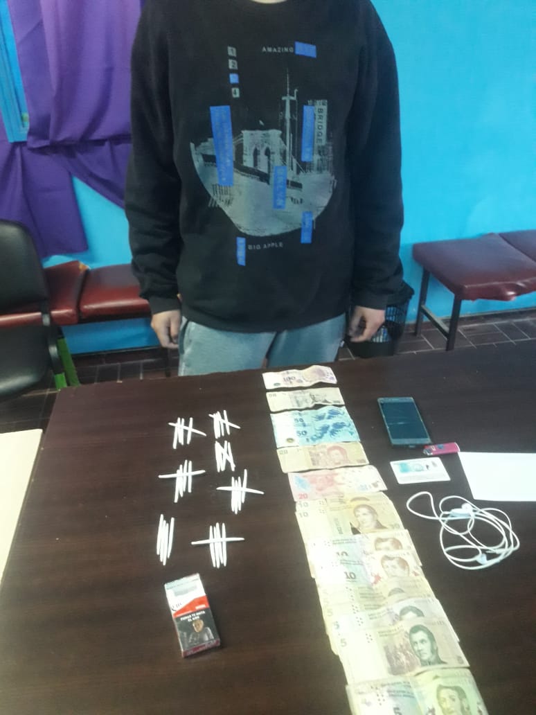 El hecho ocurrió sobre calles Sarmiento y Laprida, a metros de una escuela. Los uniformados sospechan que los tenía para vendérselos a alumnos. El joven fue identificado como Franco Manuel Liquitay, de 23 años de edad. La marihuana fue secuestrada junto a 365 pesos que el hombre llevaba consigo.
