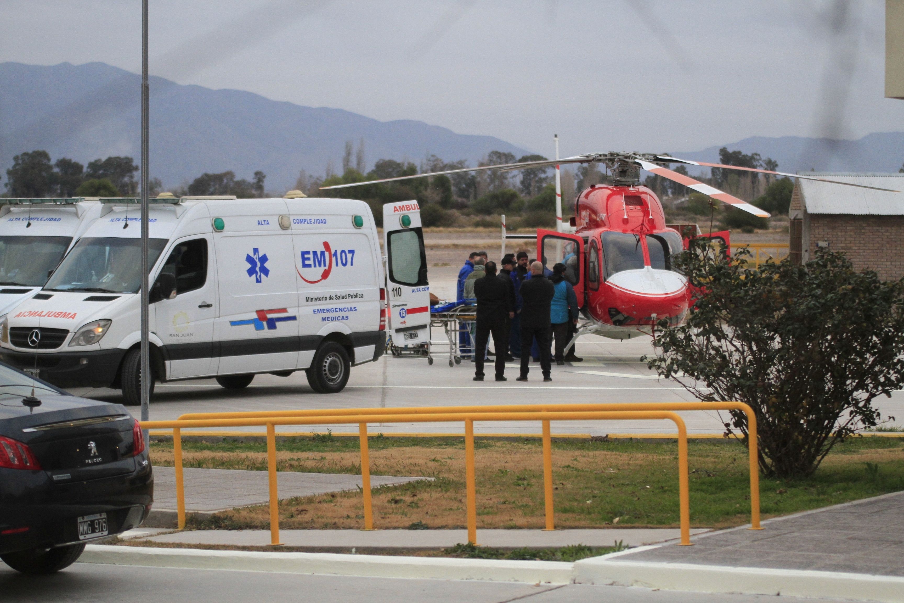 El helicóptero de la Provincia llegó al Aeroclub de Pocito cerca de las 18:10 procedente de Jáchal. Quedó internado en el Hospital Rawson.
