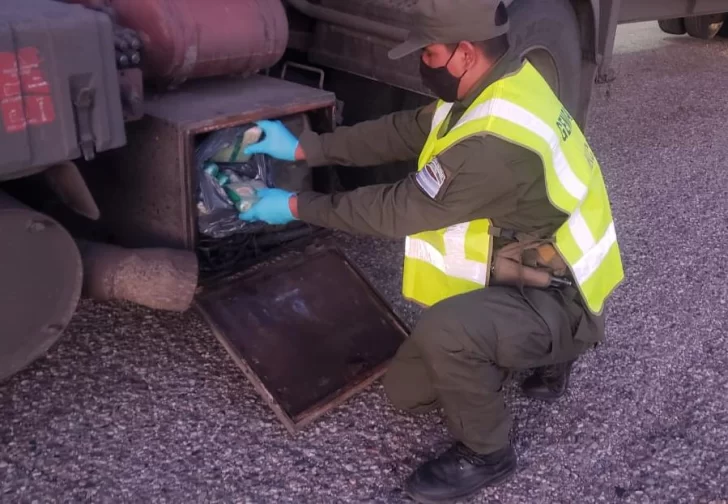 Allí constatan que el conductor transporta en el interior de un compartimiento ubicado al lado del tanque de combustible cuatro kilogramos de hojas de coca, valuadas en $64.000.