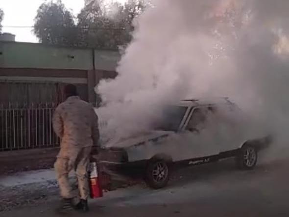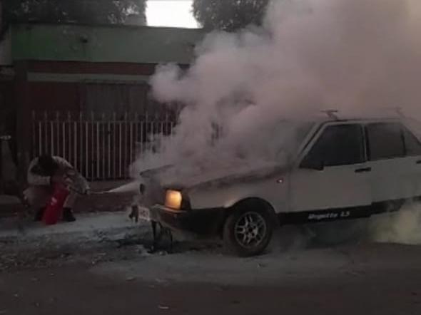 El hecho ocurrió en la puerta del Colegio Ernestina Echegaray de Andino, en San Martín, cuando el Fiat Regata se vio envuelto en llamas.