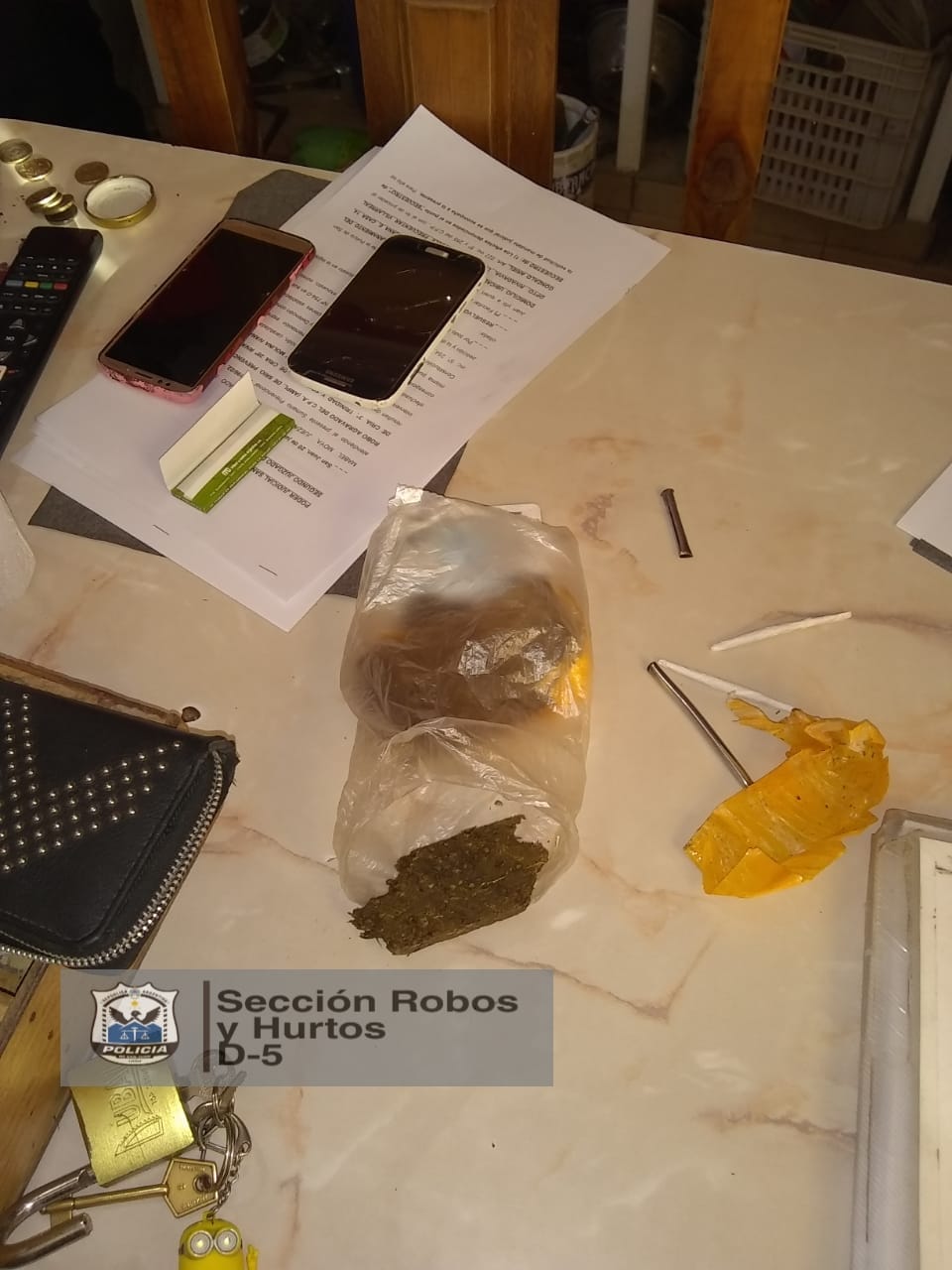 Allí, durante el registro de uno de los inmuebles se encontró un envoltorio de nylon con 188 gramos de marihuana compactada, dos porros, un paquete de papel de papel de fumar, dinero en efectivo y dos tubos metálicos con restos de cannabis.