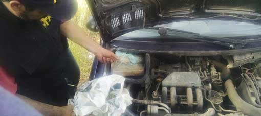 Al ver a los uniformados, el dueño de auto se dio a la fuga siendo detenido a los pocos metros de donde dejó el vehículo. La Policía Federal se llevó una gran sorpresa al requisar el rodado y al encontrar cuatro paquetes de marihuana, unos 3,800 kilos, escondidos en el motor del auto, más precisamente en la toma de aire.