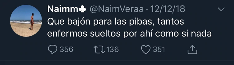 “Qué bajón para las ‘pibas’, tantos enfermos sueltos por ahí como si nada”, escribió Vera en su cuenta de Twitter el 12 de diciembre del 2018, unos días más tarde de que se conociera el asesinato de Andrea Gabriela López, la mujer de 44 años que fue estrangulada por su pareja en la localidad bonaerense de Loma Hermosa.
