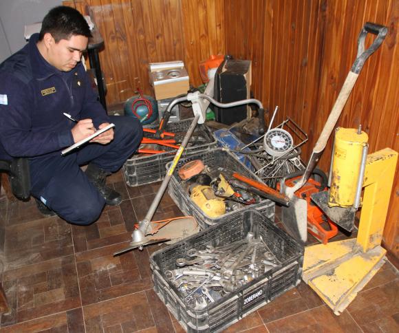 Cuatro presuntos ladrones fueron sorprendidos ayer en la madrugada en un asentamiento de Chimbas, con unas herramientas y máquinas que habían sido robadas el miércoles último de una finca de Albardón.