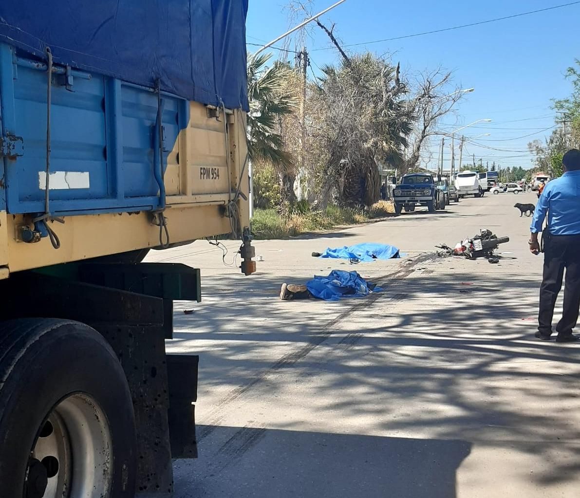 Una frenada de último momento que dejó 22 metros de caucho quemado en el asfalto. Y luego el desastre: un casco tirado, la moto destruida, plásticos esparcidos y lo peor, sus dos ocupantes en el piso, ensangrentados, sin ninguna chance. A unos metros, un camión con acoplado cargado con cal, el vehículo con el que esas dos personas se habían estrellado en uno de los cruces más peligrosos que tiene la Villa Media Agua: Belgrano y Torrent. Cristina del Carmen Agüero (57) y Juan Eduardo Sosa (34 años, padre de dos nenas), se llamaban las víctimas.