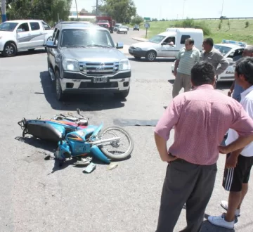 Una mujer y sus 2 hijos, quienes viajaban a bordo de una moto Maverick Top 110cc, resultaron heridos ayer al mediodía cuando un hombre en una camioneta Ford Ranger los embistió en lateral Oeste de ruta 40 y Progreso, Rawson. Cecilia Cepeda (34) y sus hijos, de 14 y 1 año, sufrieron heridas leves, informó la Policía.
