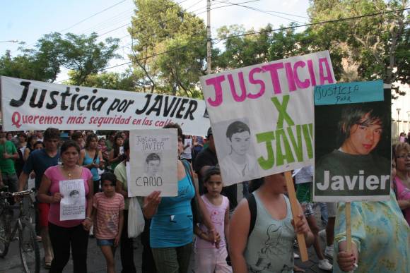 Alrededor de 100 personas marcharon por el centro ayer en la tarde, exigiendo justicia y mayor seguridad en las calles tras el crimen, aún impune, de Javier Cano, el joven de 18 años que murió luego de recibir un certero puntazo en el pecho cuando esperaba con otros cinco amigos un micro o un remís para volver a sus casas en la zona de La Legua, Santa Lucía, luego de pasar una noche en el boliche.