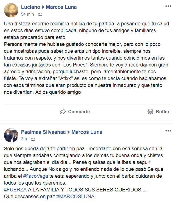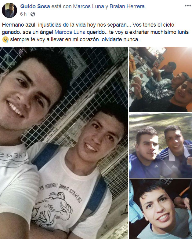 Los mensajes se multiplicaron en su muro con el correr de las horas. Tristeza, dolor y justicia, fueron los pedidos del entorno de Marcos, que no pueden creer el terrible desenlace.